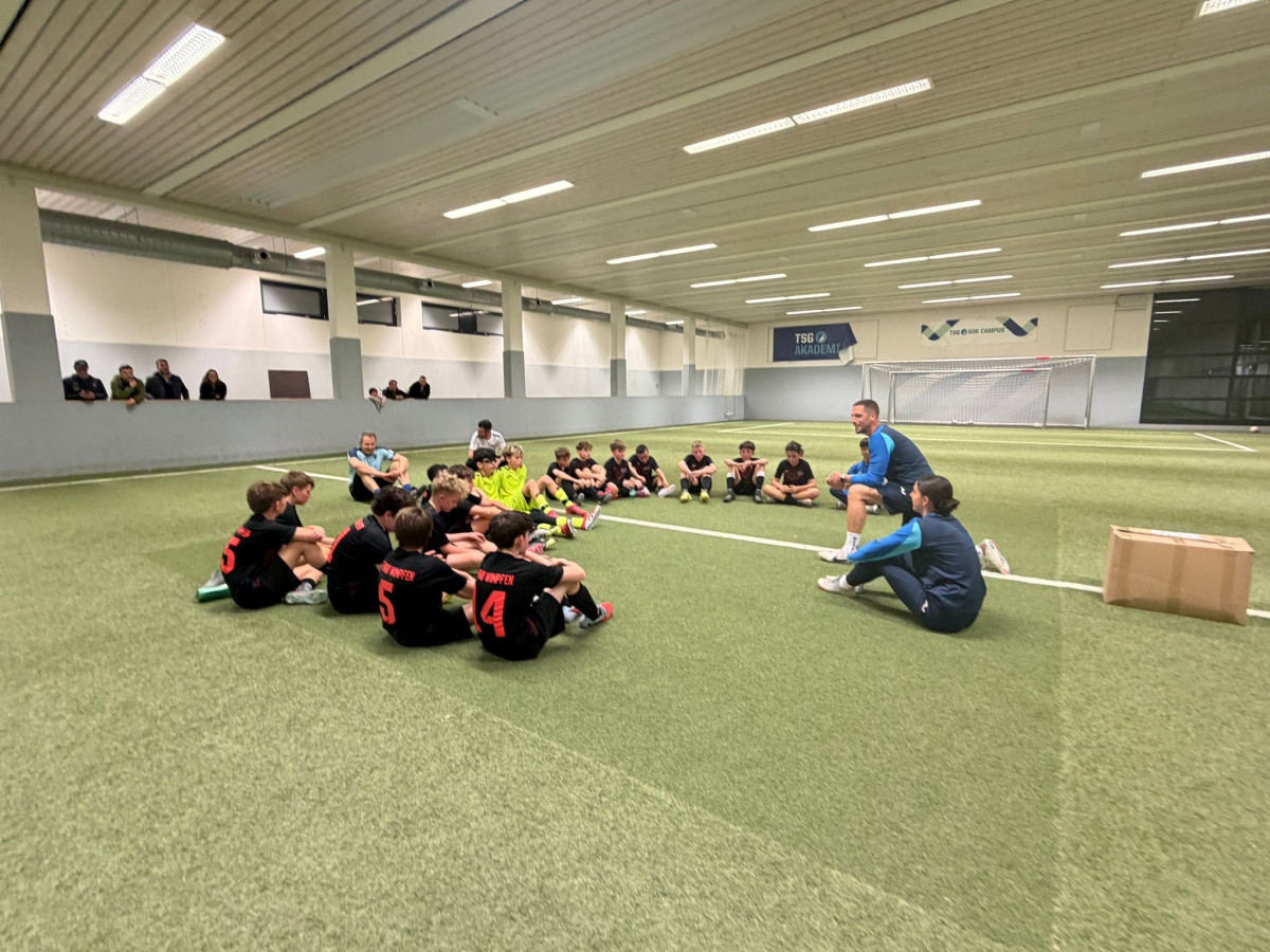 Teambuilding vor der Punktrunde: Am 6. März 2026 traf sich die D-Jugend der SG Bad Wimpfen zu einem besonderen Teambuilding-Event in Hoffenheim. Nach einem freundlichen Empfang am TSG Hoffenheim AOK Campus stand zunächst eine spannende Besichtigung des Dietmar Hopp Stadions auf dem Programm. Im Anschluss wurde es für die 17 Nachwuchskicker sportlich ernst: Trainer Dennis (TSG NLZ) führte die Mannschaft in die Soccerhalle. Dort wurde den Jungs in fast zwei intensiven Stunden die Trainingsphilosophie der TSG Hoffenheim anhand besonderer Trainings- und Spielformen nähergebracht. Der Schwerpunkt lag dabei auf dem Freilaufverhalten mit und ohne Gegnerdruck. Zum Abschluss ließ das Team den ereignisreichen Tag noch gemeinsam ausklingen, bevor die Rückreise nach Bad Wimpfen angetreten wurde. Ein rundum gelungener Event und eine ideale Einstimmung kurz vor dem Saisonstart.